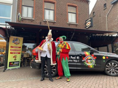 Is het niet mogelijk om thuis te blijven en de deur te openen voor de verkopers, dan is er nog geen man of vrouw overboord. Op de Bovenstestraat staan prins Paul VI en zijn jeugdprins Thijn I klaar, om het winkelend publiek de gelegenheid te bieden de Aestergezèt te kopen. Zij zijn dan ook bereid om de gezèt te signeren. Verder treft u bij de vestigingen van Albert Hein en Jumbo tussen 10 en 14 uur lieftallige Aestermaedjes of vriendelijke Aesterleden aan bij wie een gezèt kunt kopen. Woont u in Peij, oppe Slek of ’t Hingen, dan moet u weten, dat wij bij u niet meer langs de deuren zullen gaan. Mocht u deze prachtige gezèt niet willen missen, dan is er altijd nog gelegenheid om deze op diverse adressen te kopen. Er is altijd wel een adres in de buurt : Bloemenhuis Dingelstad, Berckx, Bruna en niet te vergeten de rijdende winkels van Springer-Bisschops en Springer-Heutmekers !