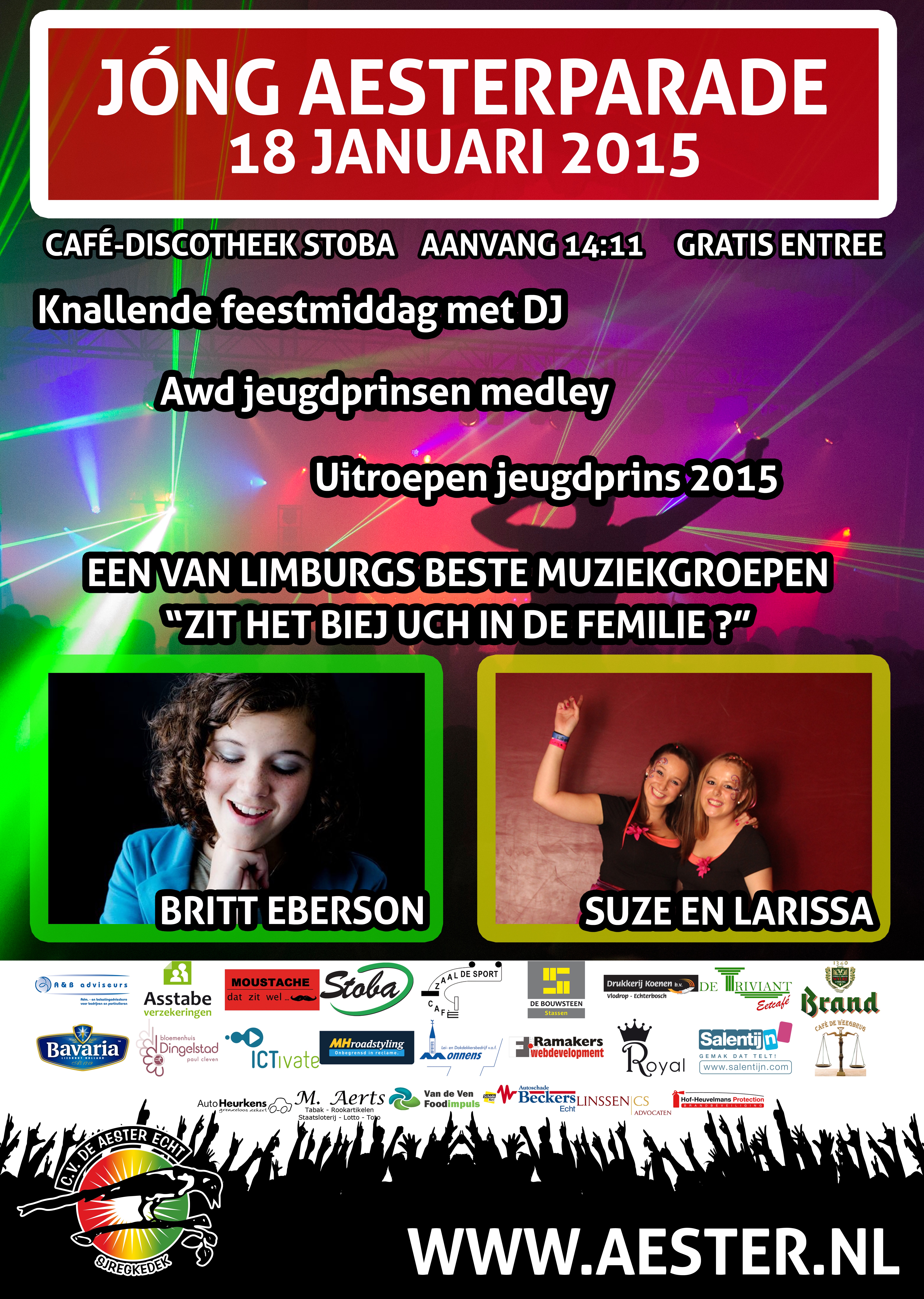Op zondag 18 januari 2014 organiseert C.V. “De Aester” Echt in discotheek Stoba de jaarlijkse Jóng Aesterparade. Rond 14:11 uur worden alle kinderen, jongeren, jeugdprinsen en –prinsessen uit heel Echt en omgeving uitgenodigd om samen te zien wie zich de nieuw jeugdprins van Echt mag noemen. Tijdens deze middag zullen diverse bekende jeugdartiesten optreden, ook zal er gezorgd worden voor een echte grote slotact, “ZIT HET BIEJ UCH IN DE FEMILIE ?”