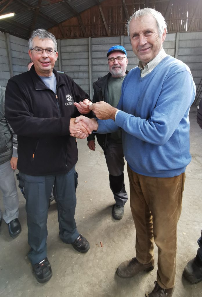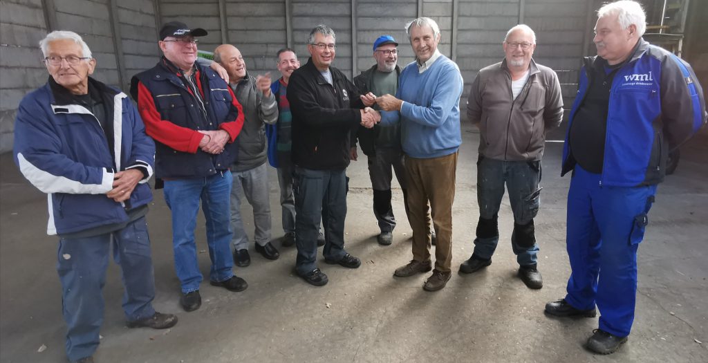 Dat wetende zijn er vele mensen binnen, maar ook buiten de vereniging bezig geweest om dit probleem op te lossen. En dat is gelukt, want vanaf 1 november 2019 is er een overeenkomst met de heer Sjaak Dingelstad om gebruik te mogen maken van een groot gedeelte van zijn loods. De mannen van de bouwcommissie, onder leiding van John Vergoossen, zijn dan ook erg in hun nopjes met dit bericht. En dat is te zien op de foto van de sleuteloverhandiging. Sjaak bedankt !