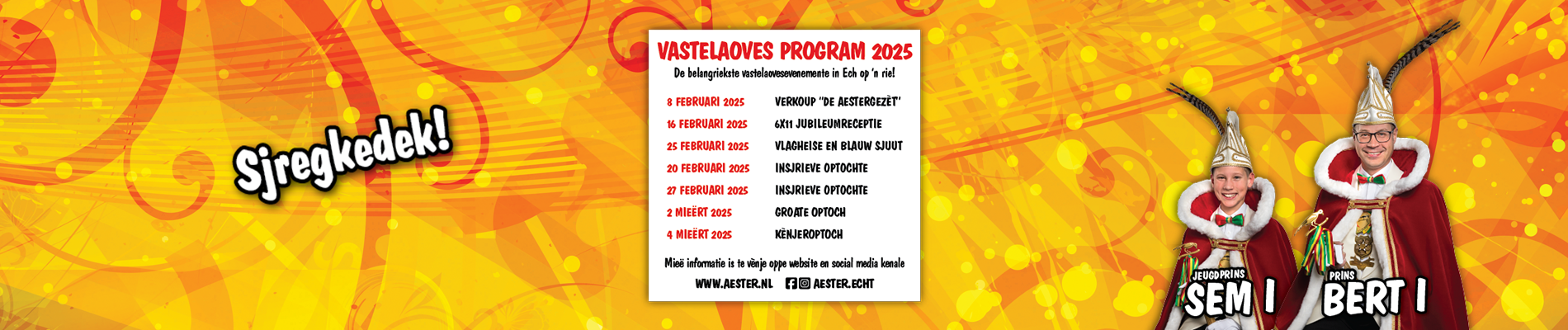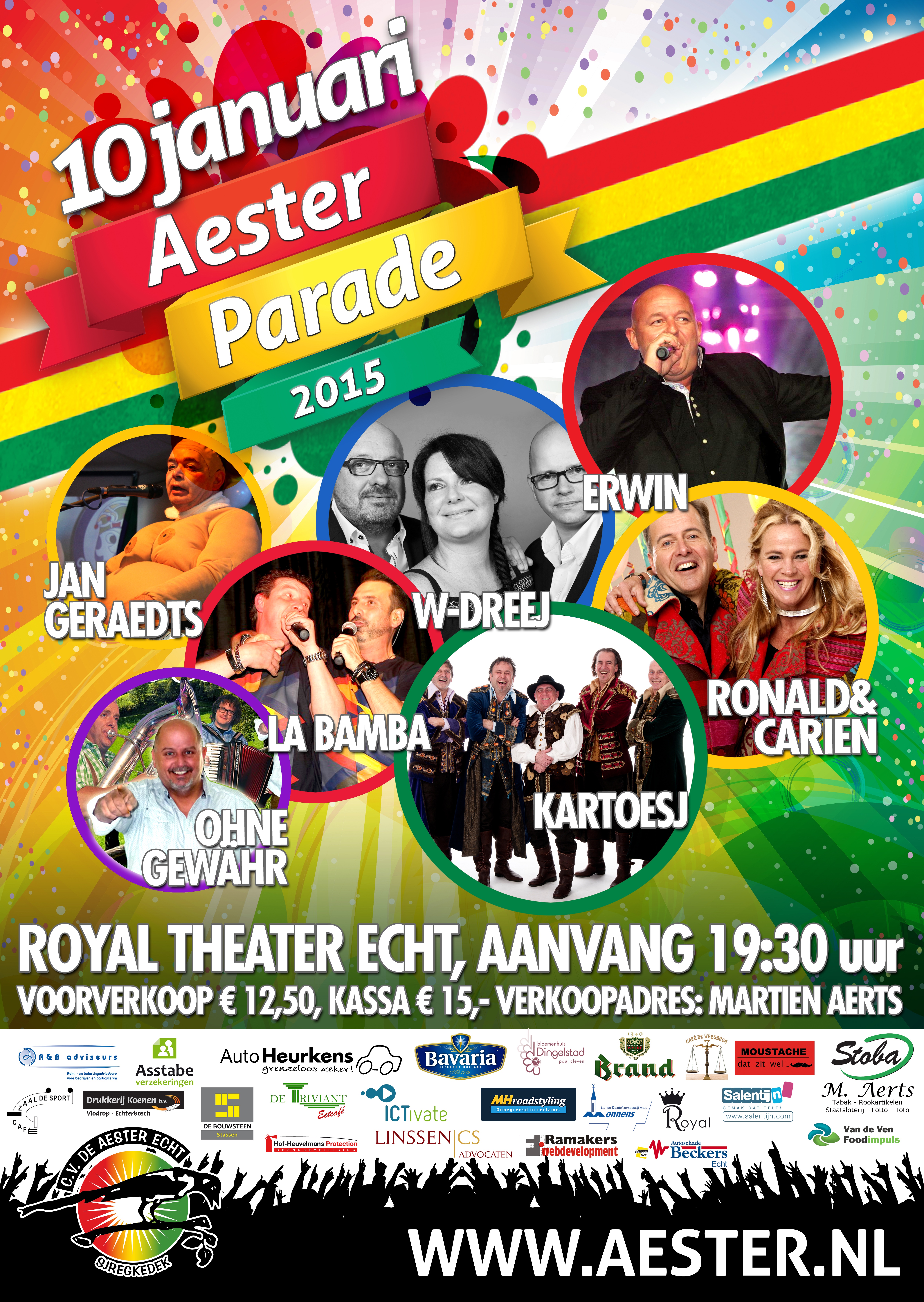 C.V. De Aester steekt de Aesterparade, die dit jaar plaats vindt op zaterdag 10 januari, in een nieuw jasje, dat de doorgewinterde bezoekers zeker zal opvallen en bevallen. Ook mensen die voor het eerst meedoen aan deze festiviteit zullen enthousiast zijn over de opzet.