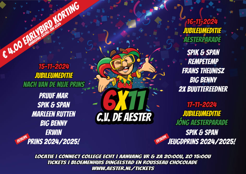 Dat klopt! En wij lanceren ook meteen de kaartverkoop voor dit spetterende feestweekend van 15 tot 17 November. Dit met in de maand Juni € 4.00 Earlybird korting.